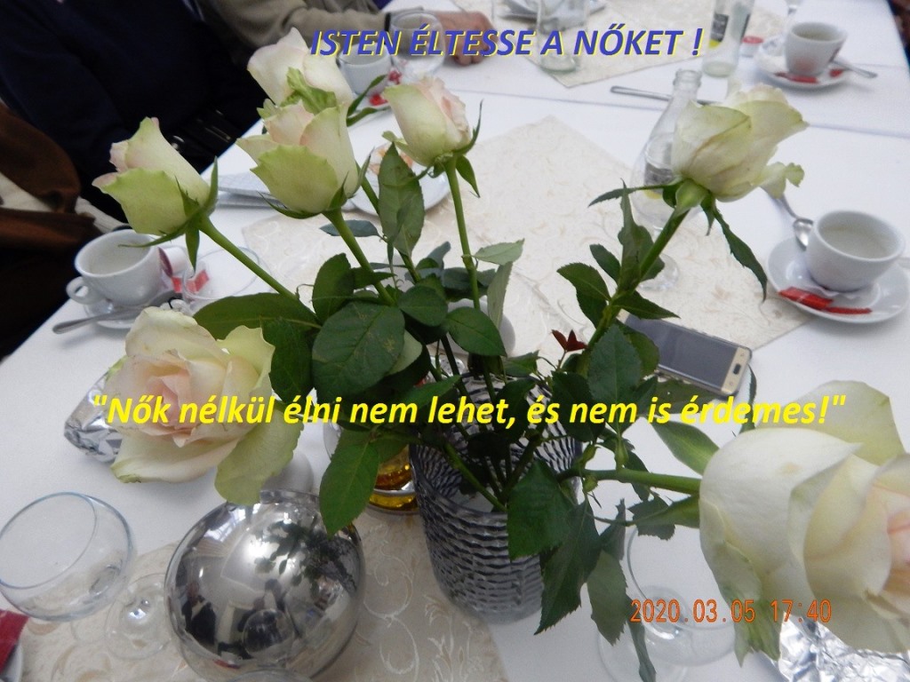 2020. 03.05. NŐNAPI ÖSSZEJÖVETELSzFSz Egyesűlet, Gyergyószentmikós Telephely tagjai az ASTORIA vendéglőben a NŐK napja alkalmával ünnepi ebéden vettek részt. A férfiak egy-egy szál rózsával köszöntöttük a jelenlévő nőket : . ISTEN ÉLTESSE A NŐKET!